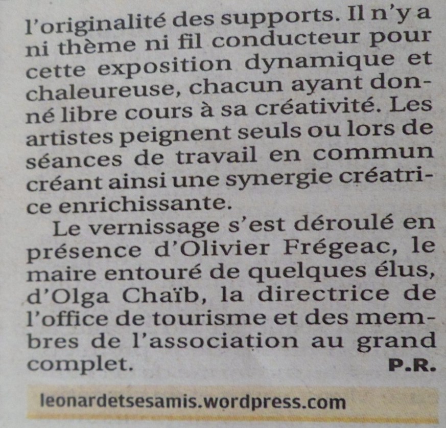 Article dans le quotidien LA PROVENCE, au sujet de LEONARD et ses Amis exposant à Peyrolles jusqu’au 14 Février 2015 » SAM_4669